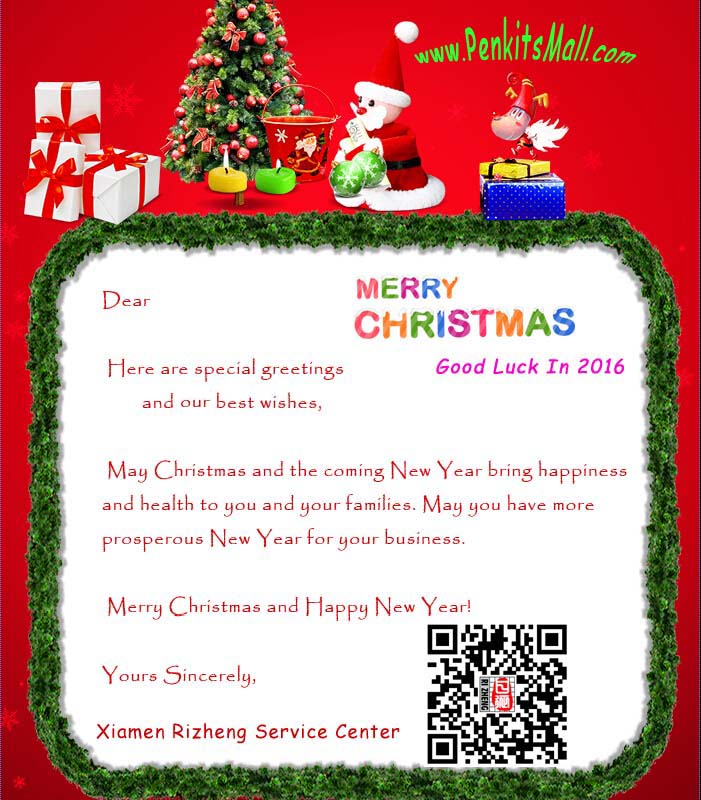 Thank you for your understand and great support in 2015,we hope do more business with you in 2016.Here is our Christmas cards,please check and accept our best wishes.